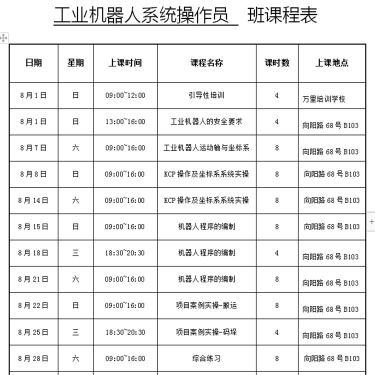 一期课程已结束,二期课程本周开课(报名已截止),三期工业机器人周末班8月1日开班,报名预约中!~