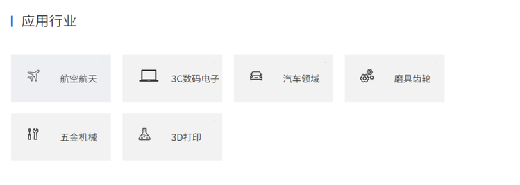 应用行业航空航天 3C数码电子 汽车领域 磨具齿轮 五金机械 3D打印