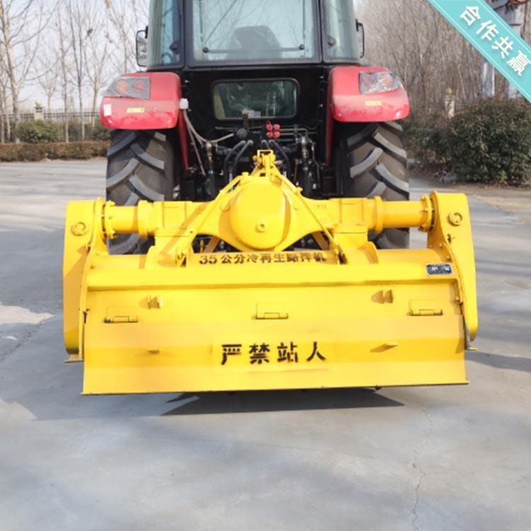 这款机器拌合很均匀,动力也很充足,可以把地面上的一些小石子给打磨碎的灰土拌和机,这款机器是拖拉机带动的,80的拖拉机可以带动1.6米的,铣刨深度200MM,整机重0.69吨,可以装42个合金刀头,45个合金刀头的灰土拌和设备。