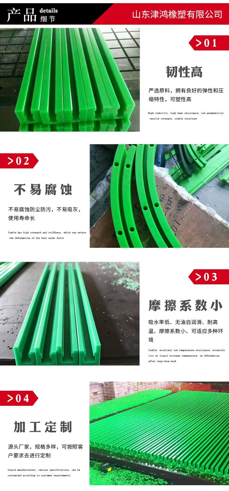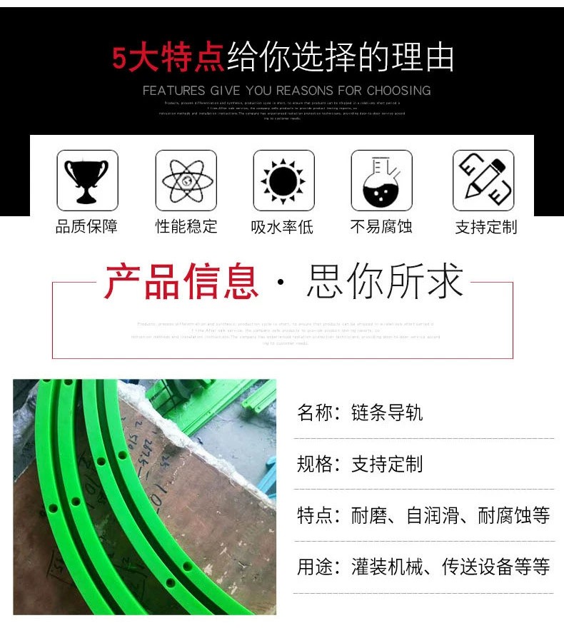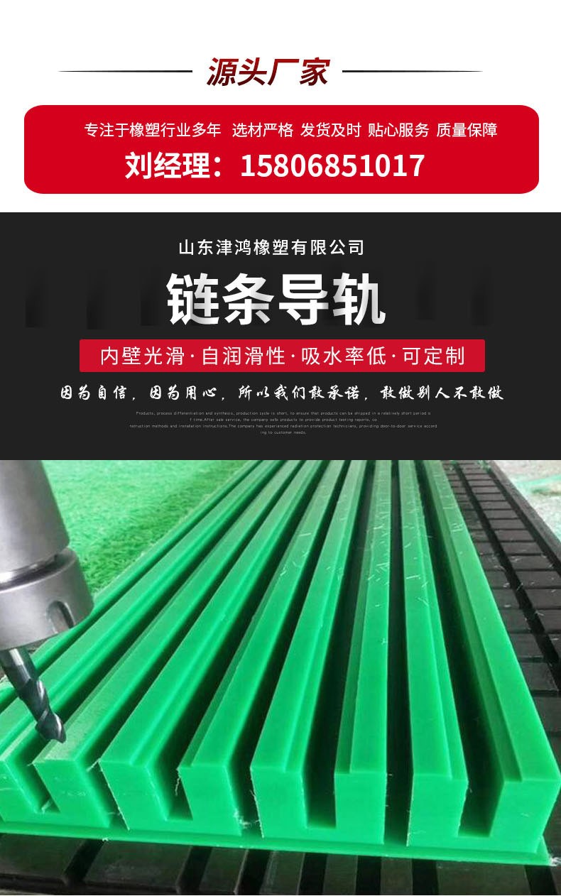 津鸿橡塑食品厂流水线上高分子聚乙烯导轨绿色UHMWPE耐磨条