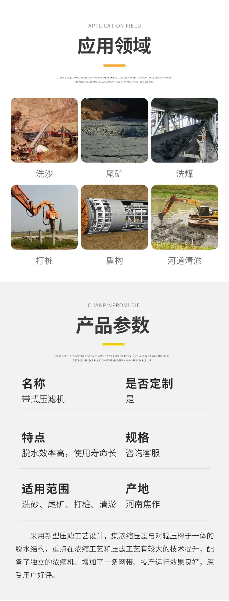 适用范围 | 洗砂厂、尾矿污泥、河道清淤 | ||