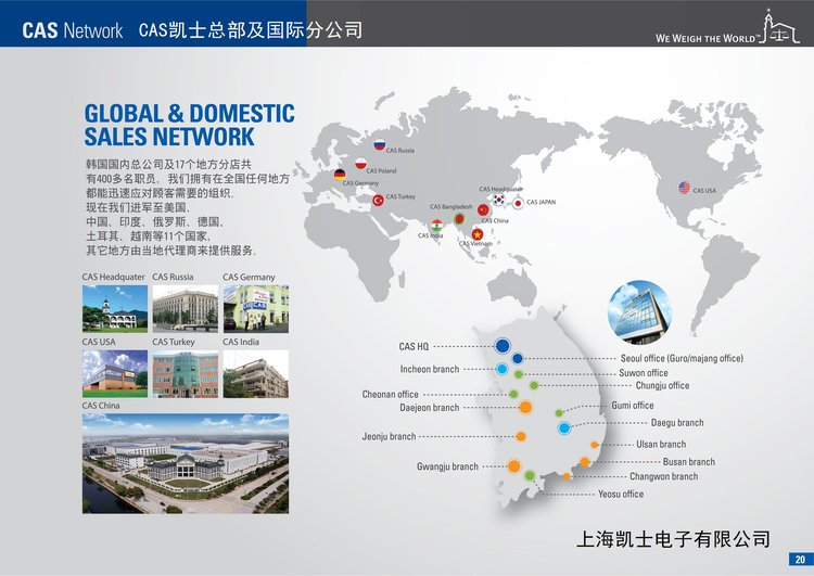 服务理念:CAS公司自1983年成立以来,一直致力于打造世界称重领域的重要品牌。维护用户的利益乃是CAS公司为重要的使命。