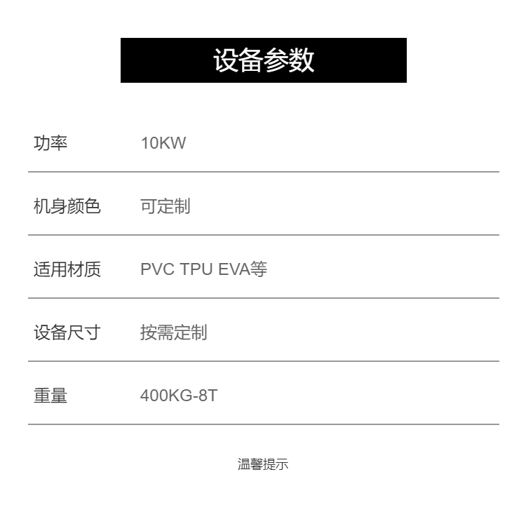 适用材质 | PVC TPU EVA PET APET等 | ||