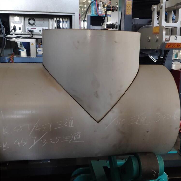 等离子切割机具有多条相贯线连续切割的功能,只要将管件上需切割的数据一次输入机器,机器可自动完成多条相贯线的切割,过程中无需人工干预。机器只需输入相互配合的管子的半径、相交角度等参数,数控相贯线切割机就能自动切割出管子的相贯线、相贯孔以及焊接坡口。