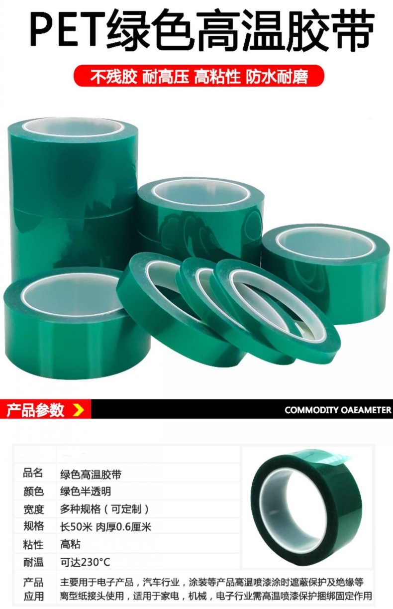 适用范围 | PCB板高温遮蔽、高温喷涂喷粉遮蔽、镀金遮蔽 | ||