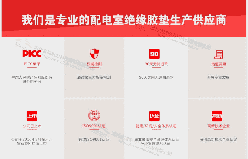 金能电力的绝缘橡胶垫物理机械性能良好,具有优良的绝缘性能,可在干燥的-35~+100空气中介电系数要求高的环境中工作。弹性强、拉伸强度大,表面光泽度高。