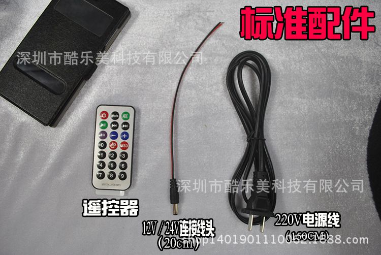 产品出厂配置:(音箱主机一个)+(12v/24v连接改装线一条)+(遥控器一个)+(220v线一条) 共4样