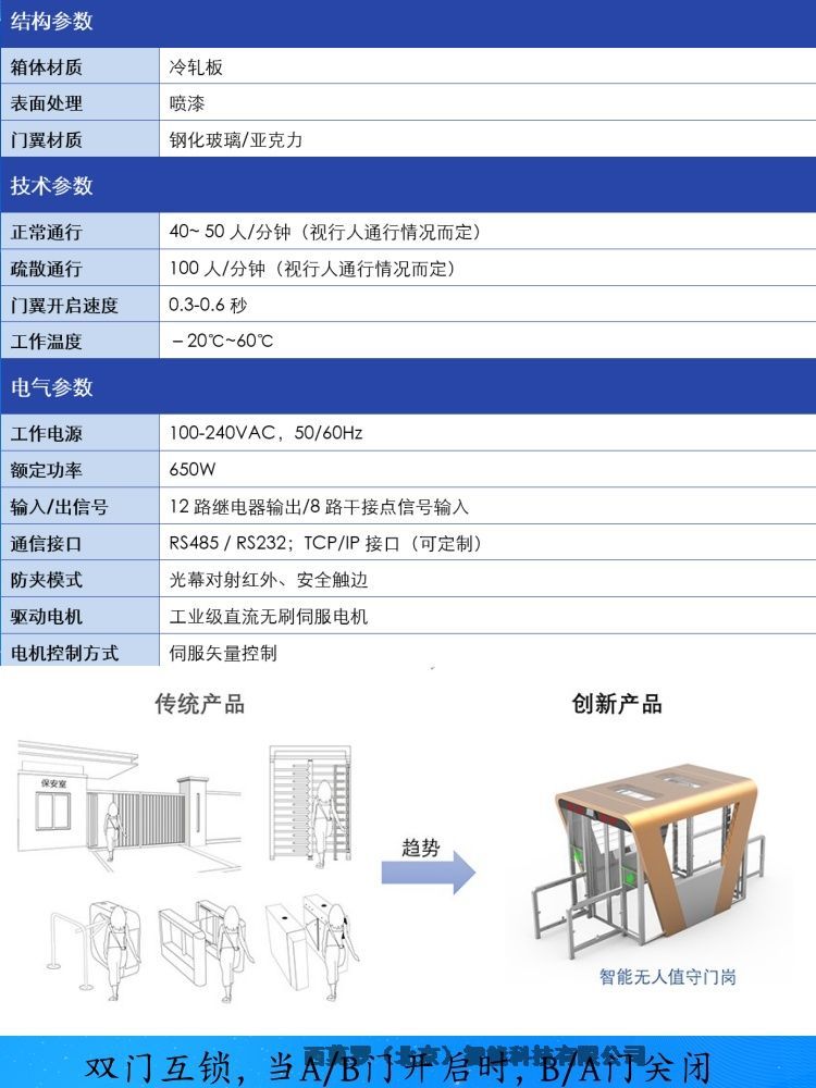 (4) A/B门互锁模式:A门受控通行,B门互锁,B门受控,A门互锁。