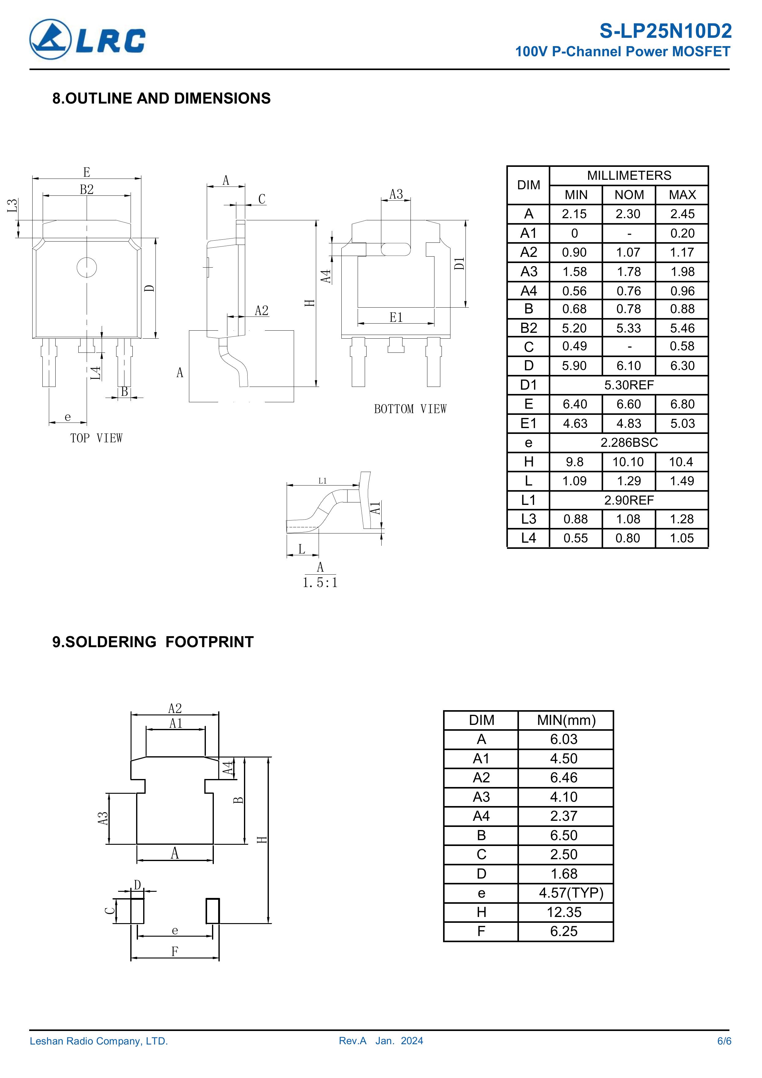 LRC/乐山无线电 S-LP25N10D2 全新原厂原装中低压高频功率控制电子开关管,车规级P型沟道场效应管-100V、-25A、45mΩ、P-Channel、贴片式中低压MOSFET:S-LP25N10D2/25N10。Vds电压:-100V;Id电流:-25A;Rds(on)内阻:45mΩ;封装方式:TO-252-2L;最小包装数量:2500pcs/盘-编带。