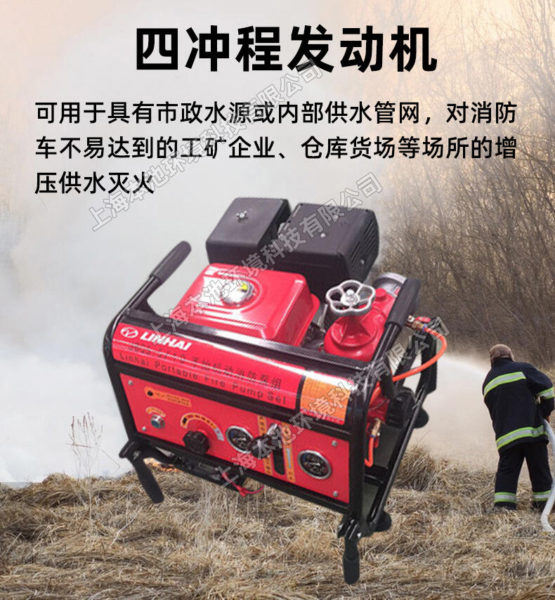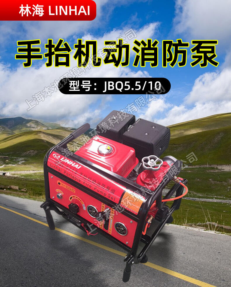 LINHAI林海JBQ5.5-10水泵,11KW大功率,扬程100m。手抬机动消防泵。四冲程串联离心泵。可用于具有水源但无固定消防设施且离城市消防站较远的广大农村集镇地区的火灾扑救。可用于具有市政水源或内部供水管网,对消防车不易达到的工矿企业、仓库货场等场所的增压供水灭火。