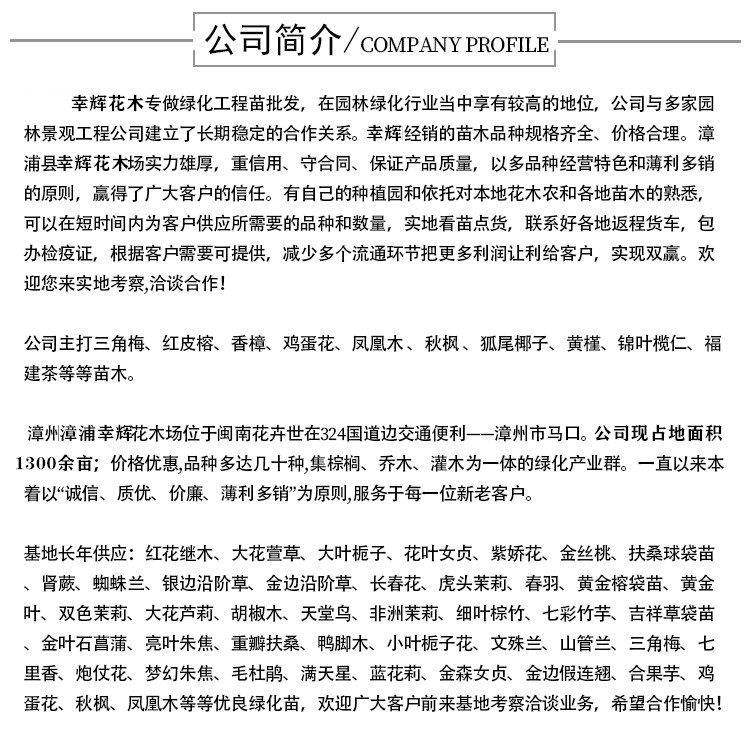 温馨提示:苗木价格随着季节变化浮动,下单前欢迎来电询价,谢谢光临,祝君生活愉快!