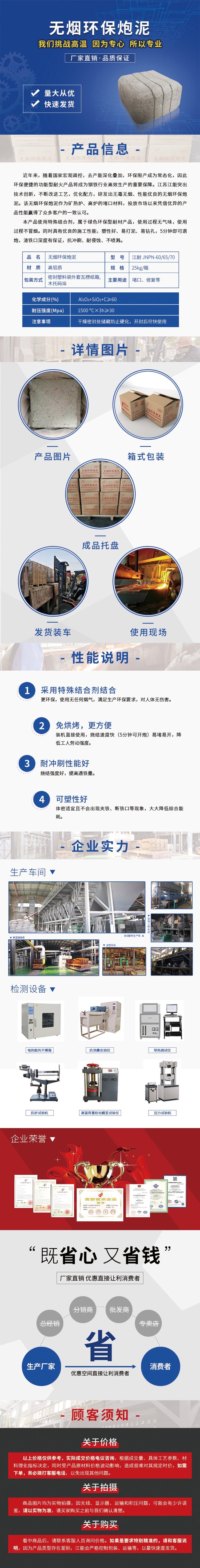 铝质炮泥无烟炮泥江耐免烘烤抗冲刷耐侵蚀