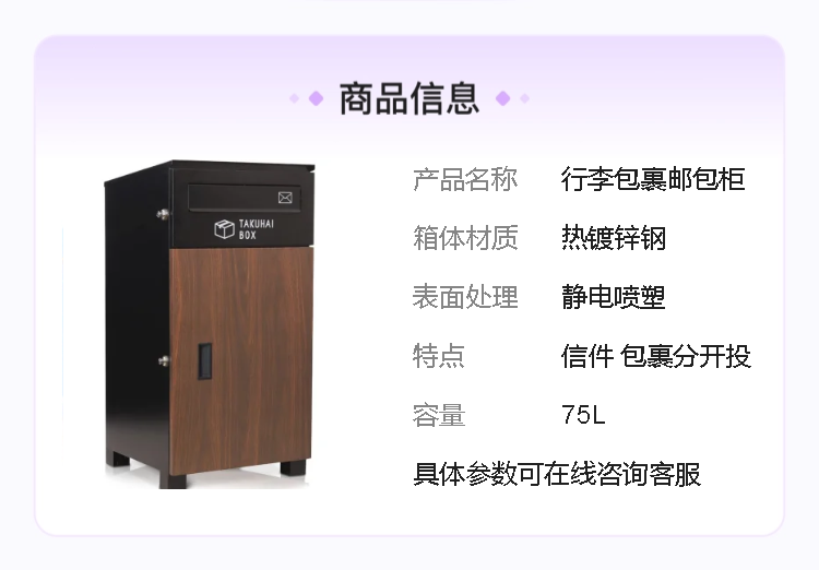 产品类型 | 包裹自助投递 | ||