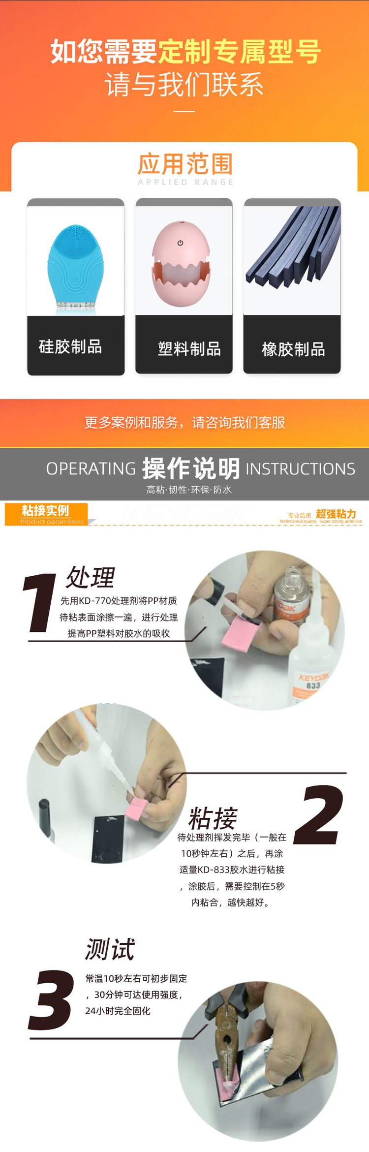 粘合材料 | 硅胶 橡胶 塑料 石材 木材 布料等 | ||