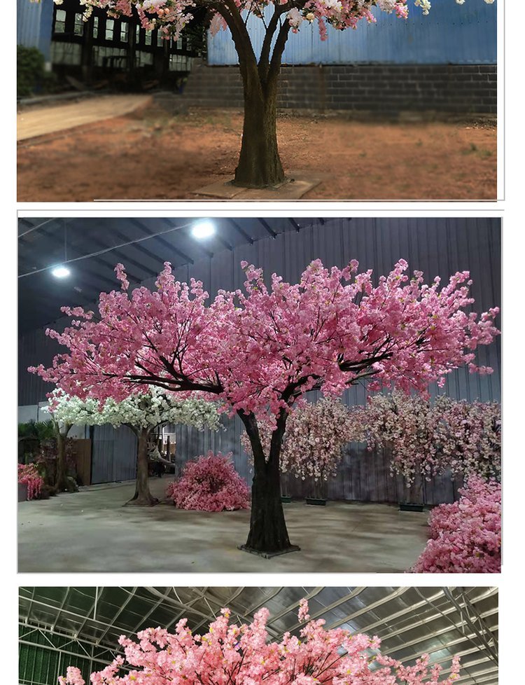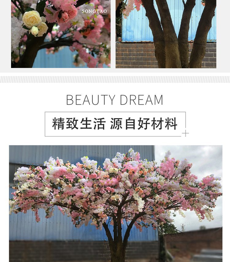 产品材质:花朵:绢布 全新PE ?树杆:玻璃钢 钢结构/真杆