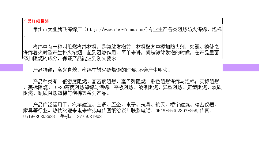 商铺名称:常州市大业腾飞海绵厂