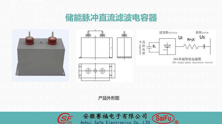 赛福 直流柜油浸式高压脉冲储能薄膜电容 3100VDC 500UF能够在较长时间内充电,而在较短时间内放电,从而形成一个很大的脉冲功率。脉冲功率的获取是靠已充电的脉冲电容器组,通过主电抗器短时振荡放电获得的,而脉冲电容器组是在试验前由功率不大的充电装置,用较长的时间充电,振荡放电为数十毫秒,从而大大增加了试验功率与电源功率之比,改变了经济效率。