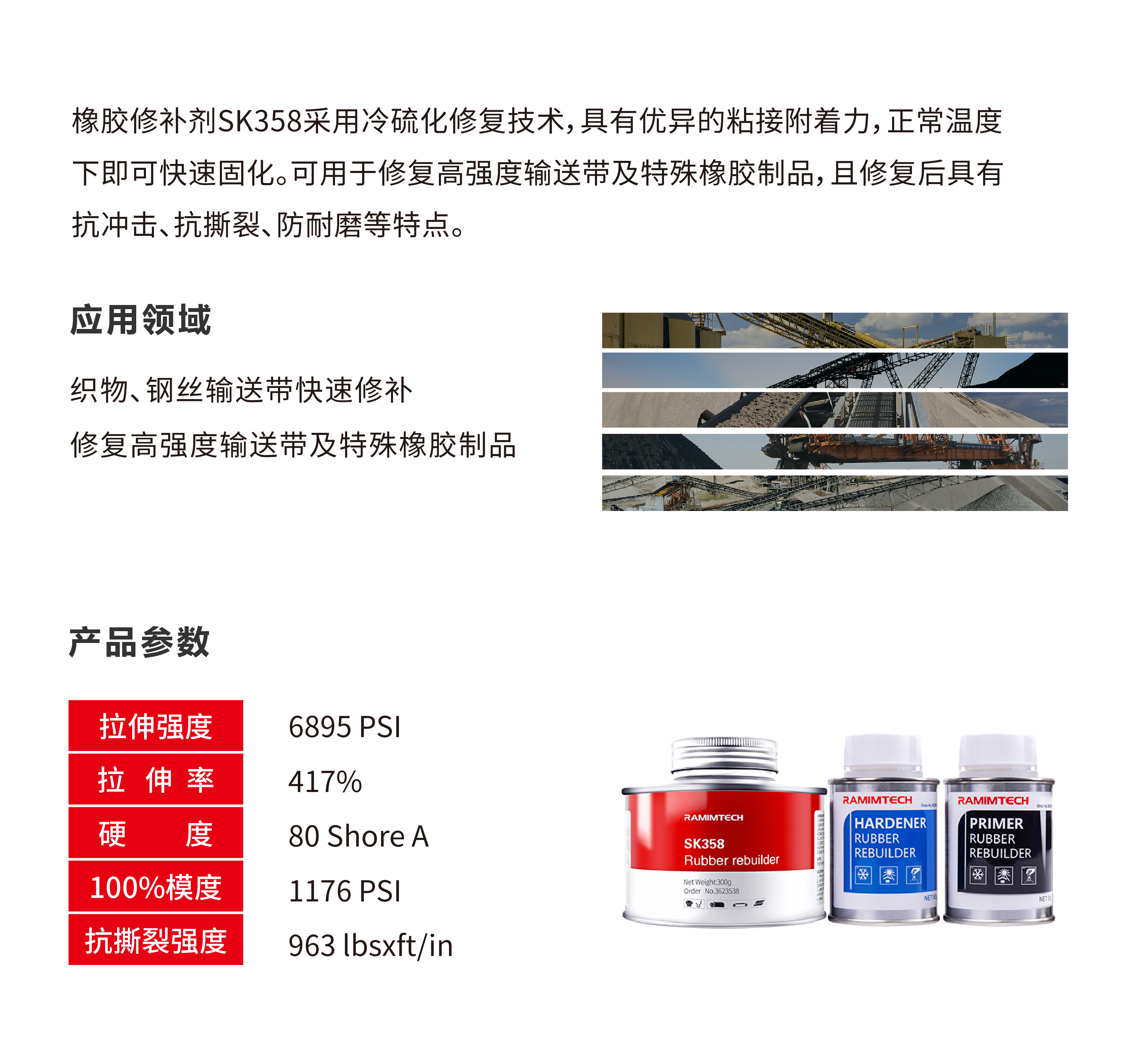用途范围 | 输送带修补,滚筒包胶填缝 | ||