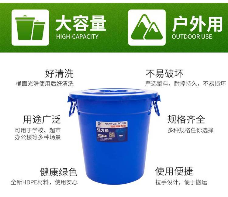 蓝色带盖塑胶手提加厚80L定制食品级钢柄塑料水桶