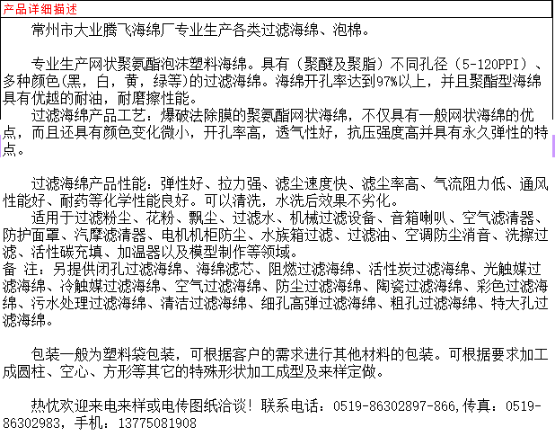 商铺名称:常州市大业腾飞海绵厂