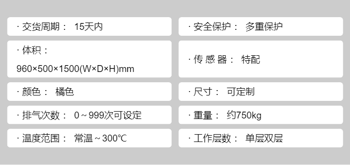体积 | 960×500×1500(W×D×H)mm | ||