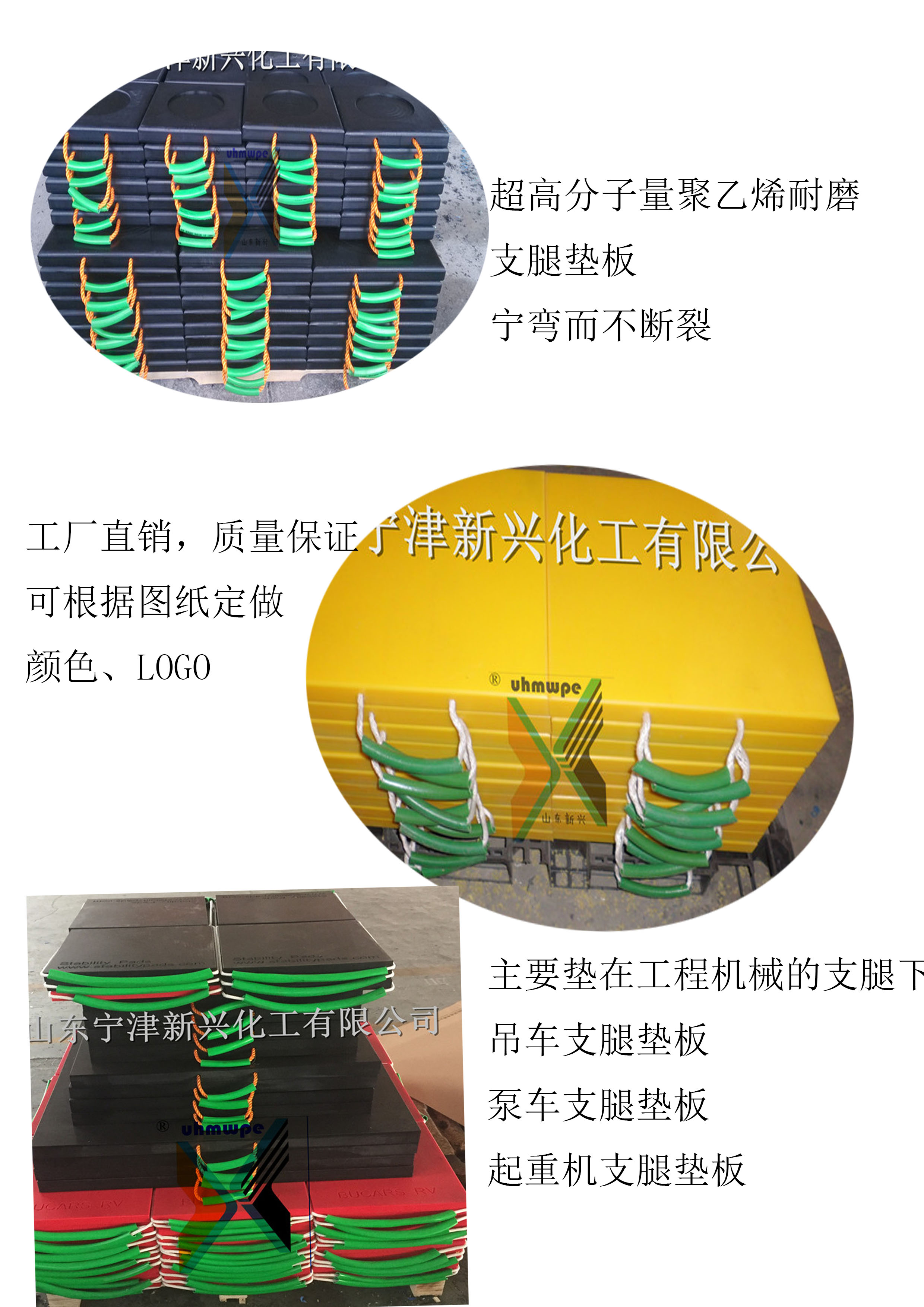 产品名称:吊车支腿垫板,泵车支腿垫板,承重垫板,UHMWPE支腿垫板,抗冲击性强支腿垫板,超高分子聚乙烯支腿垫板,韧性极好支腿垫板,高分子支腿垫板,高分子承重垫块,宁弯不断支腿垫块,泵车垫板,吊车垫板,工程塑料垫板。