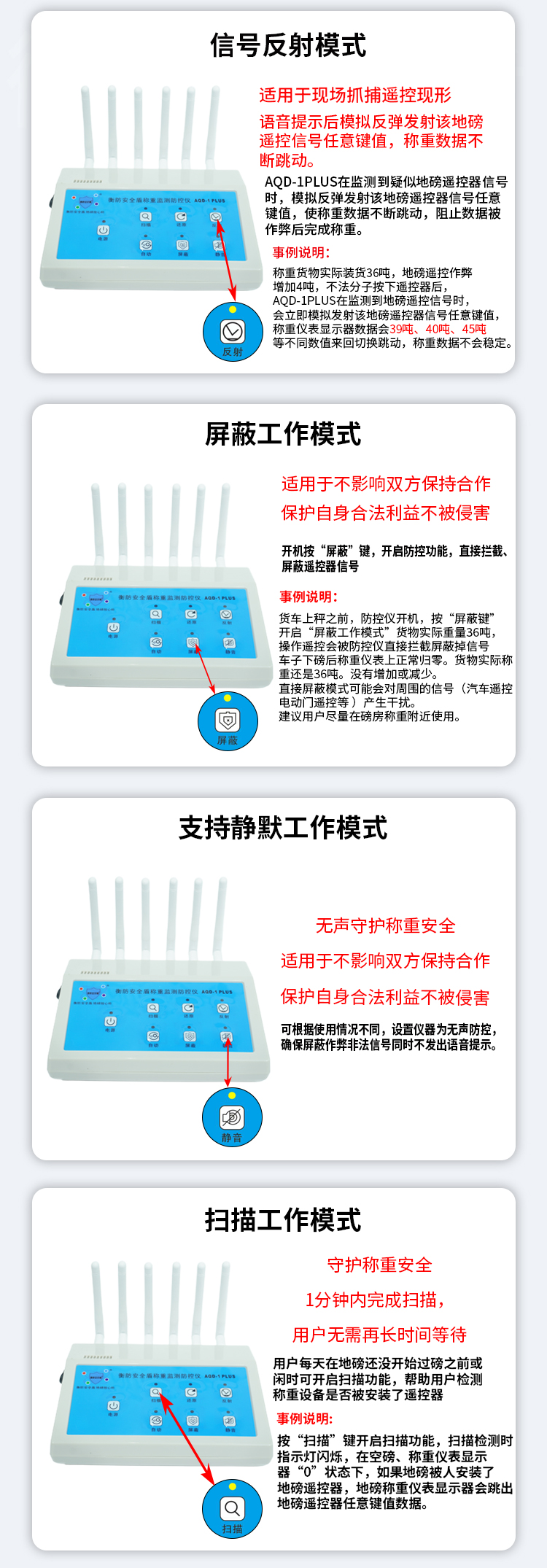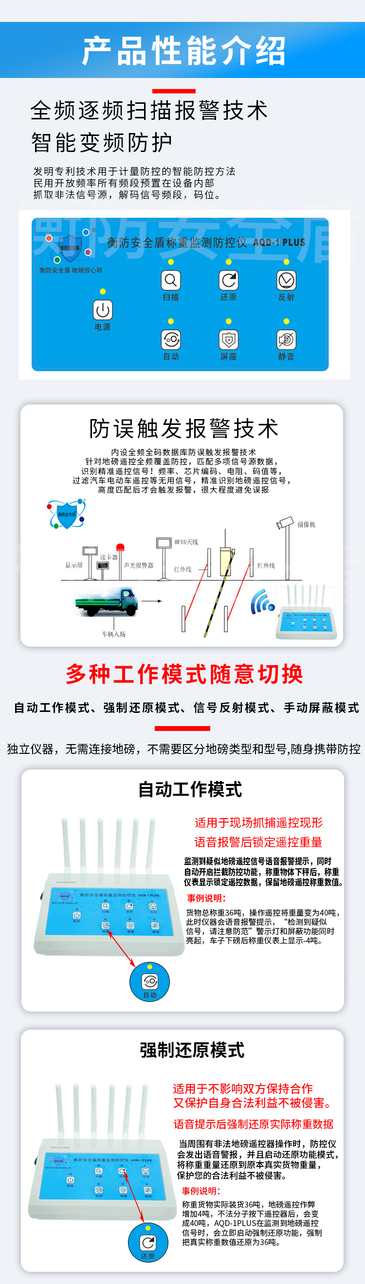 工作模式 | 自动屏蔽;自动还原;反射信号;手动屏蔽;静音工作 | ||