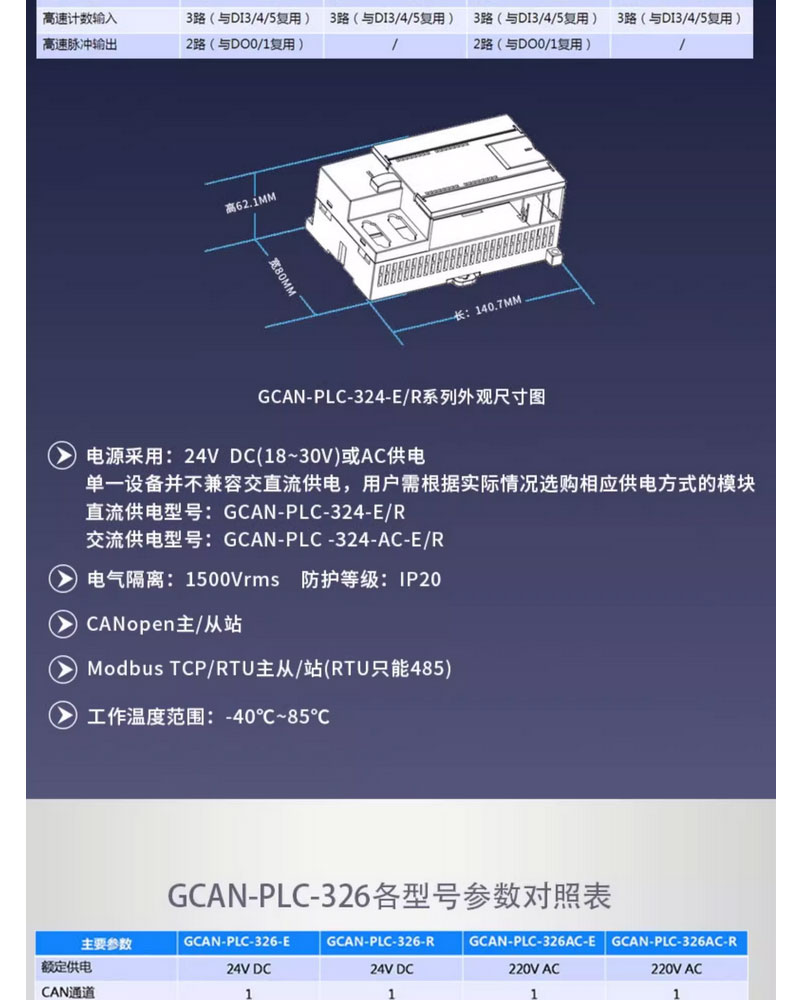 广成支持codesys/OpenPCS编程一体PLC控制器 GCAN-PLC-324-E modbus 型号 | GCAN-PLC-324-E | ||