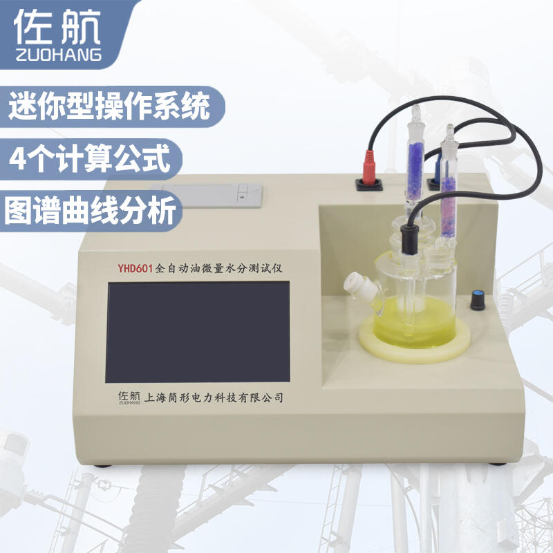 佐航YHD601微量水分测定仪,采用卡尔—费休库伦滴定法,对不同物质进行微量水分的测定,是最可靠的方法。微量水分测定仪成功的应用了这一方法,采用了自动控制电路,32位嵌入式微处理器作为主控核心,嵌入迷你型操作系统。从而使该仪器工作更可靠,使用更方便。其分析速度快、操作简单、精度高、自动性强等特点。广泛应用于石油、化工、电力、铁路、农药、医药、环保等部门。功能特点
