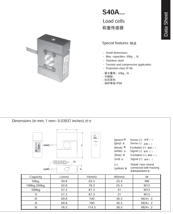 S40AC3 量程50kg至5T (C3精度 不锈钢)