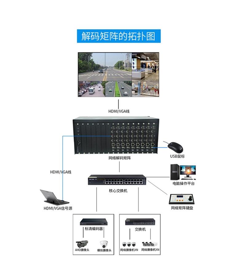 高清网络解码矩阵拼接屏键盘36分割监控数字音视频主机设备切换器