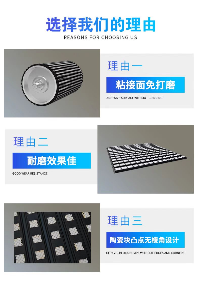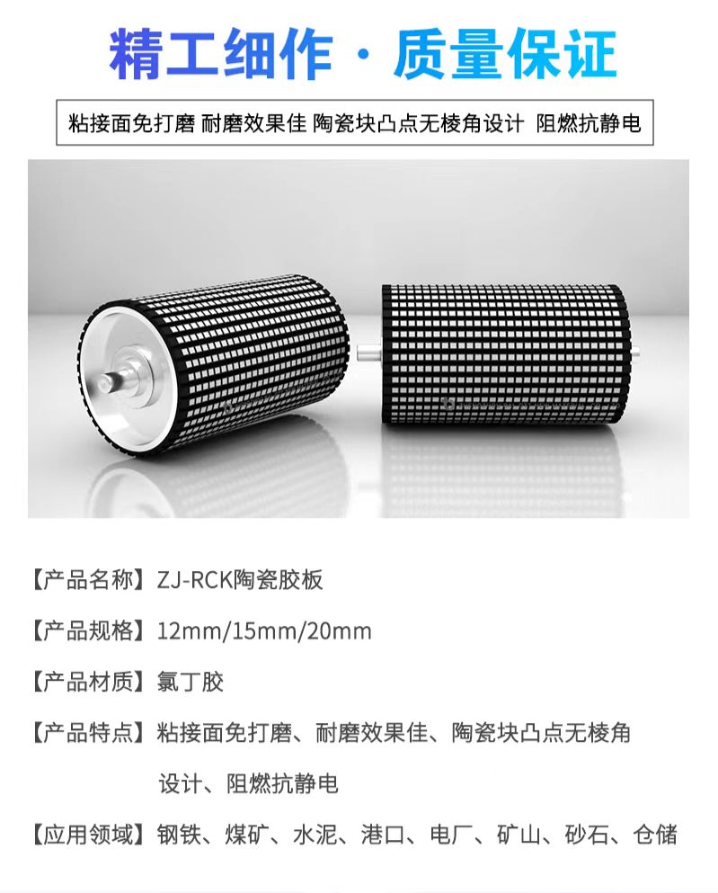天力合火电厂滚筒包胶用12mm厚耐磨防滑陶瓷橡胶板ZJ-CK-1215