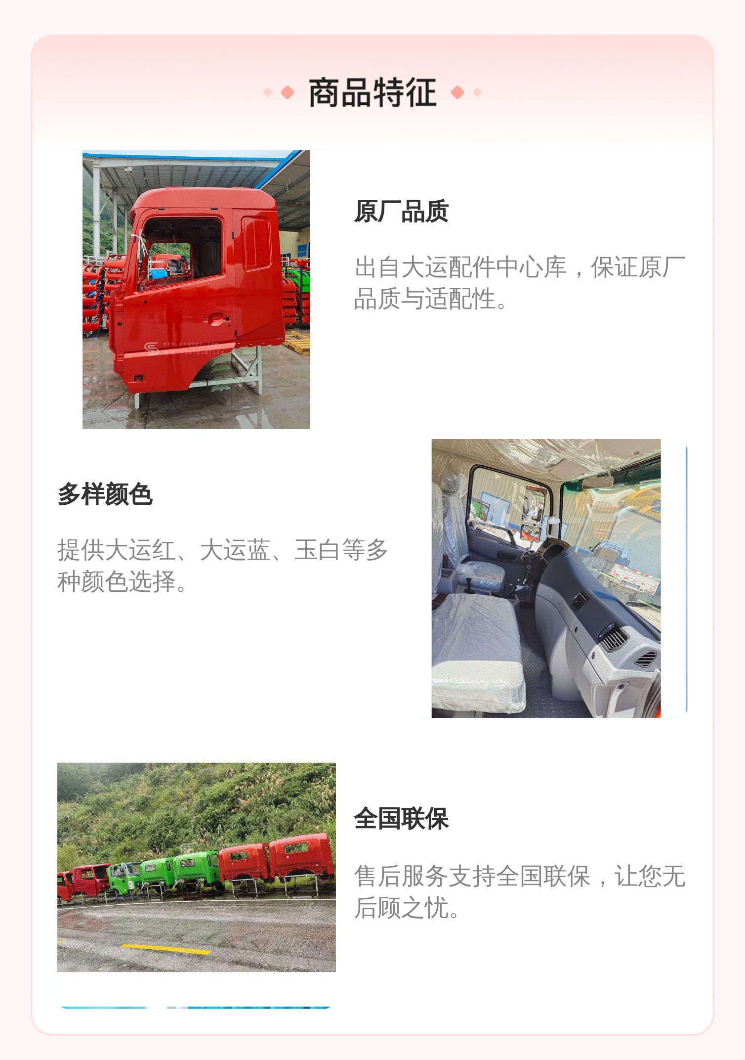 产品特性 | 大运配件 | ||