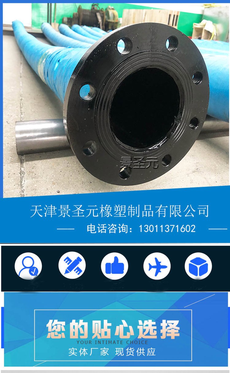 2、大口径胶管管体受压变形小。胶管的胶层具有氧化,胶管的爆破压力一般不低于工作压力的三倍。胶管分普通型(不带接头)和带接头两种。接头样式可采用卡箍、多种扣压接头和法兰连接,也可根据客户需要定制。