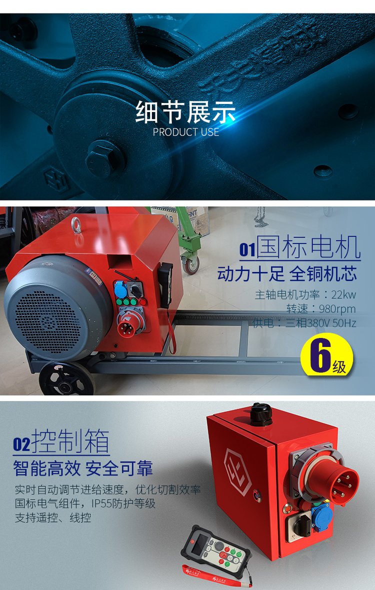 电动绳锯机22kw大功率钢筋混凝土桥梁石材切割机无线遥控电滚子