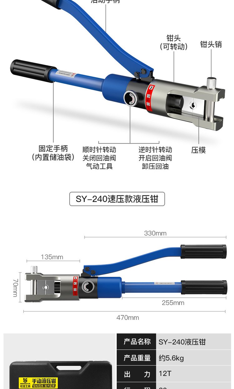 液压钳电动绳锯配件小型便携式手动压线钳16\/25\/35接线端子钳