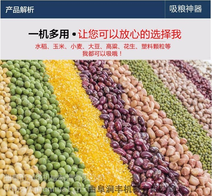此机器可以随意流动使用,操作简单,方便! 软管吸粮机是门为农村运粮、装车、倒垛、粮仓、仓储而设计的一种小型设备,具有体积小、重量轻、便与移动、吸粮 高、破损率低,适用场合广泛,安全等特点,特别适合个体农户,粮食收购商,粮食户及农业合作社使用。也可以用在养殖场、饲料厂、食品厂、塑料厂等输送颗料的场合。可输送小麦、大豆、玉米、稻谷、高粱、塑料、树脂、大米等颗粒。可水平、倾斜方式输送。任何运送方式、运送成本都低。它改变传统运送方式,节省劳动力,方便使用,深受广大用户的欢迎。