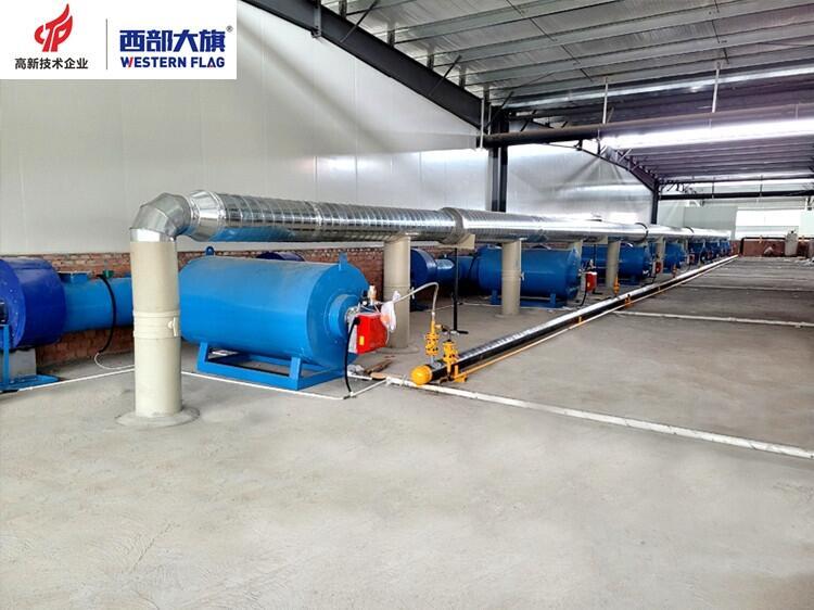 西部大旗天然气热风烘干房,根据客户需求,采用天然气为热源。天然气通过专用燃烧机充分燃烧以释放热量,经热风设备加热空气对烘干房进行供热,带动烘干房内部升温,再结合烘干房内部循环风对产品进行烘干作业,排出湿气,达到烘干的目的。