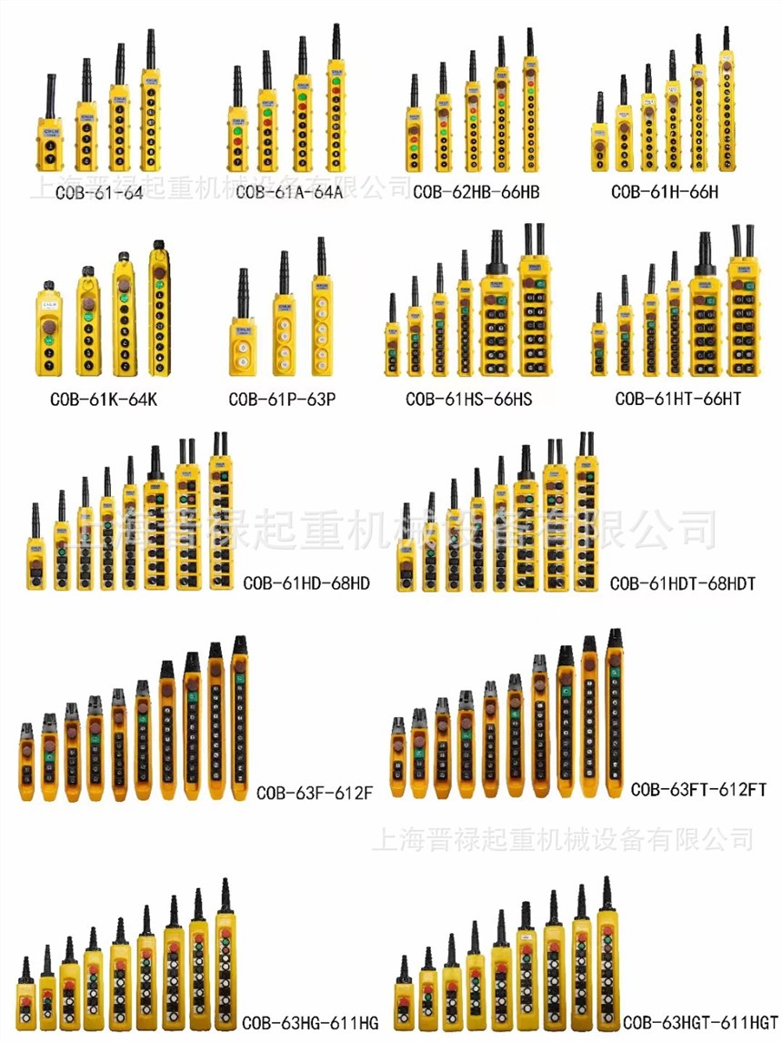 控制按钮由外壳、急停开关及多按钮开关组合而成。外壳采用ABS塑料压注成型。按钮头采用明显的方向指示标记,不易磨损。触点采用标准银触头,导电性能好。急停开关需旋转或指动后复位,操纵按钮自动复位。