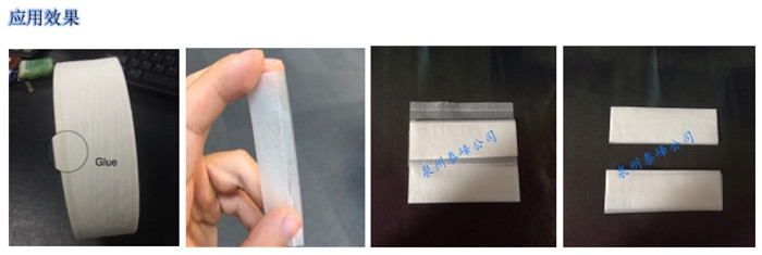 可再湿型胶粘剂,干燥后无粘性,使用时在干膜上湿水后可恢复其粘性,专为透明牙签纸(手卷纸)而设计。产品湿水后具有初粘力高、拉力强的特点,胶膜柔软,粘接力强。同时,产品亦是一种环保粘合剂。
