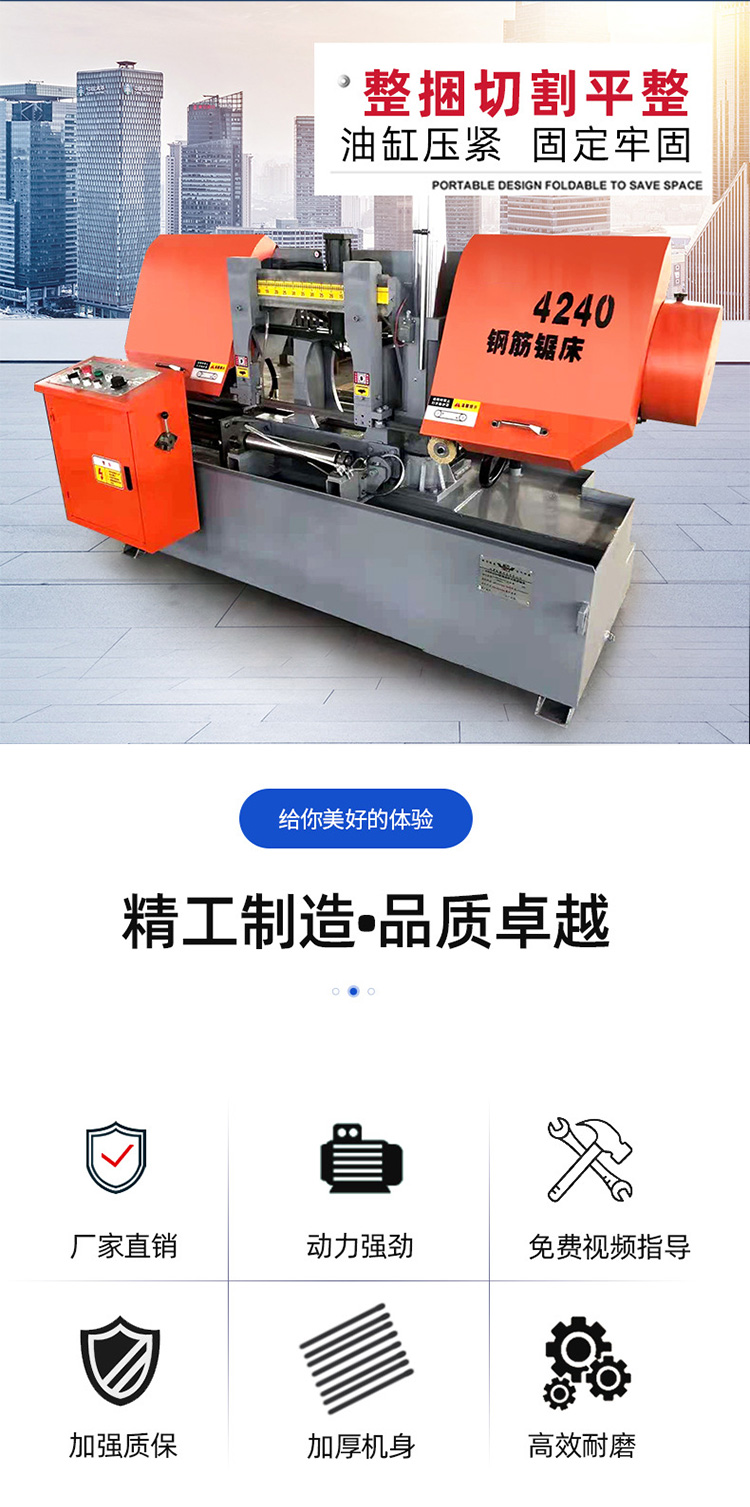 金属切割带锯床 数控液压成捆钢筋带锯床 半自动工字钢水锯床 锯床根据机械分类:般分为种类型圆锯床带锯床锯床,带锯床厂家,这种不类型的锯床般加工不同类型的产品,并且这 大类的产品也着自己再加严密的分类,以便于适应不同的产品,能够切割出加适用的零件和工具。 全自动带锯床在极其特殊情况下,锯床,也可以通过关断配电箱上的总开关停车。液压弯管机主要用于管子的塑性成型 ,日常生活中弯管机可分为数控弯管机,液压弯管机等类型。液压弯管机具有功能多、结构合理、操作简单、方便、安 装快速等优点,用于电力施工,公铁路建设,锅炉、桥梁、船舶、家俱,装潢等方面的管道铺设及修造,液压弯管机除 了具备弯管功能外,还能将油缸作为液压千斤顶使用,相对于数控弯管设备而言具有价格便宜,使用方便的特点,在国 内弯管机市场占据主导产品位置。