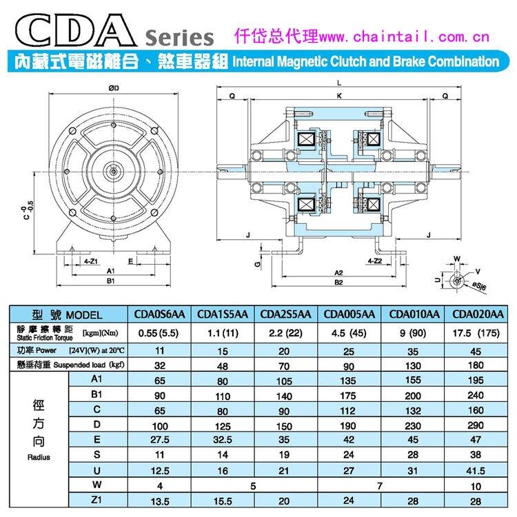 台湾仟岱套筒式电磁离合刹车器组:CDC2S5AA/CDC010AA/CDC020AA/CDC020AA