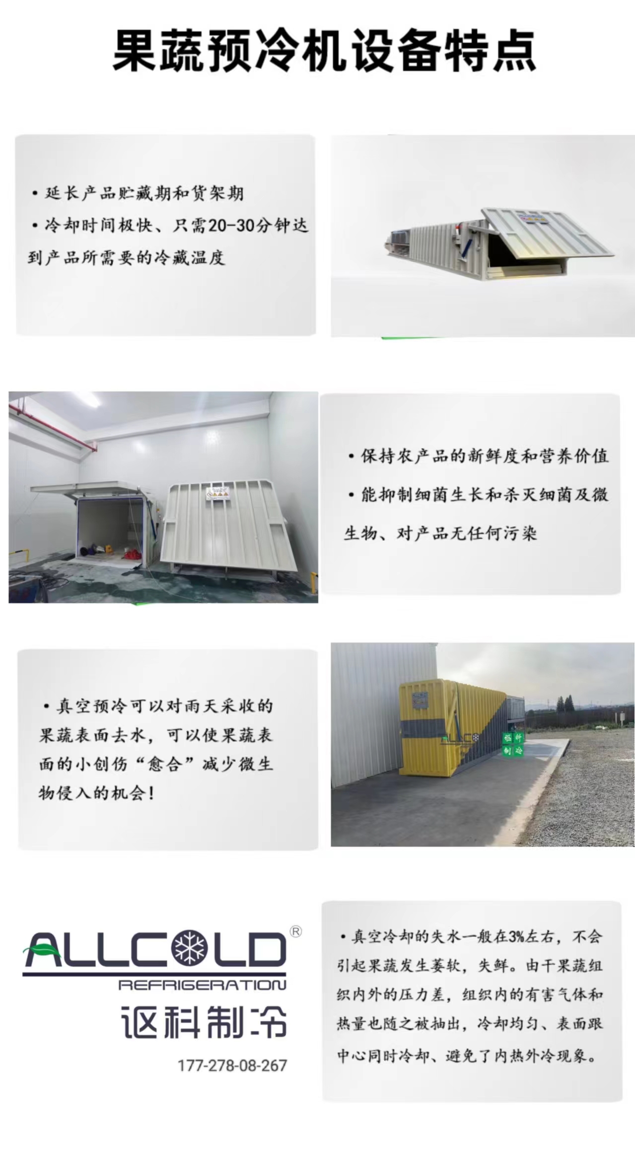 主要用于生鲜蔬菜、水果、鲜切花、鲜肉及水产品等如全部叶菜类、秋葵、辣椒、胡萝卜、圣女果、西兰花、韭菜、莴苣、四季豆、食用菌、鲜切花、甜玉米、草莓,杨梅等的田间热去除,抑制呼吸,延长果蔬,食用菌,鲜花等胡保鲜期及货架期。