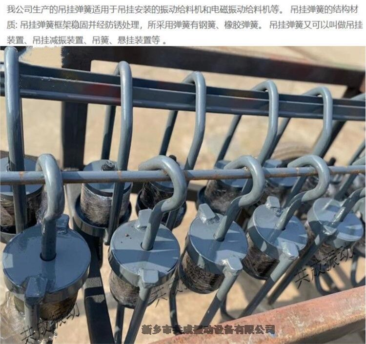 悬挂式给料机吊钩 给料机橡胶减振装置吊簧 GZG50-4振动给料机吊挂弹簧在物料搬运和处理过程中扮演着至关重要的角色。作为连接给料机和悬挂装置的关键部件,其安全性和可靠性直接影响到整个生产线的稳定运行。