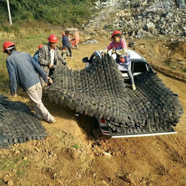 矿山1.8*1.8米爆破炮被编织橡胶网开山飞石防护网厂家炮孔炮垫