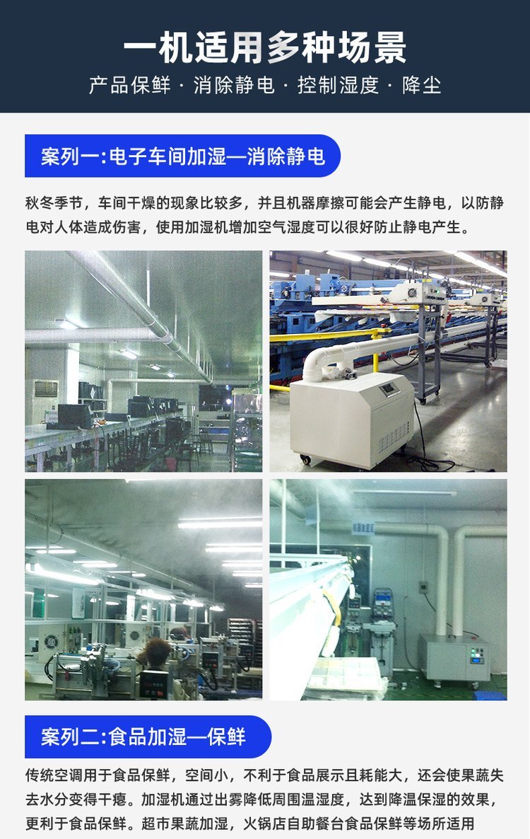 适用场景 | 纺织车间、电子车间、印刷车间、种植养殖、烟草加湿 | ||