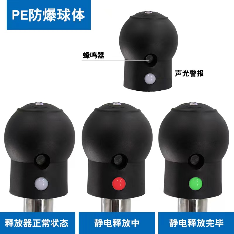 人体静电释放器经国家防爆电气产品质量监督检验中心(NCEX),完全符合下列标准: GB3836.1-2010爆炸性环境***部分:防爆人体静电释放器设备通用要求 GB3836.4-2010爆炸性环境第4部分:由本质安全型“i”保护的设备 GB50074-2002《石油库设计规范》 SH3097-2000《石油化工静电接地设计规范》 防爆人体静电释放器的外观是由不锈钢管和静电亚导体球制成,静电亚导体是介于导体和非导体之间的材料,其表面电阻率大于1*106Ω小于1*109Ω。在电荷泄漏时,因为亚导体具有较高电阻率,其泄漏电流十分微弱,处于μA极,不会产生瞬间电击现象,避免因电火花***可燃性气体,从而达到导电防爆的目的,采用静电亚导体的防爆人体静电释放器更适用于易燃易爆等危险防爆环境,如加油站、石油库等对静电特别敏感的场所。