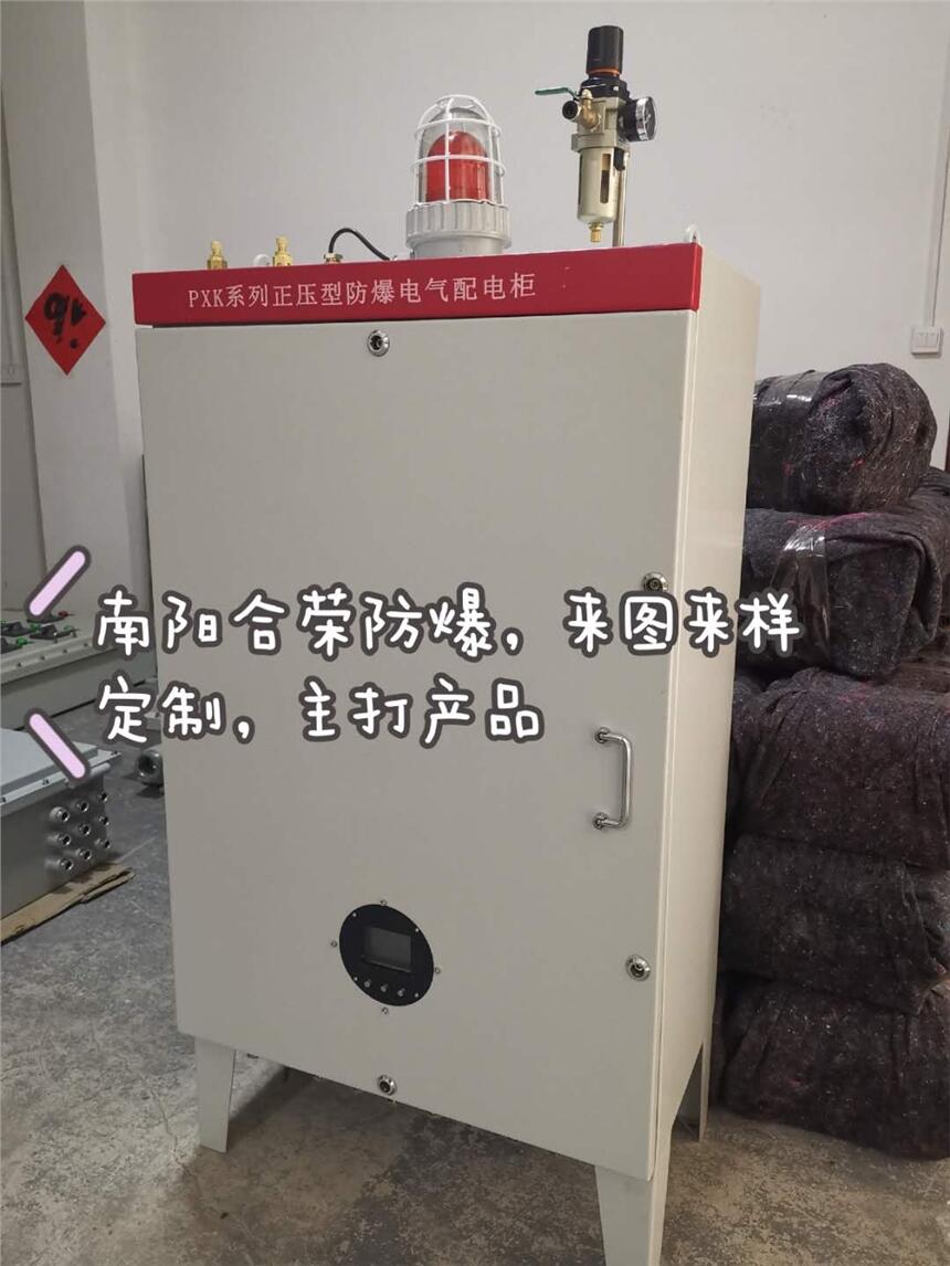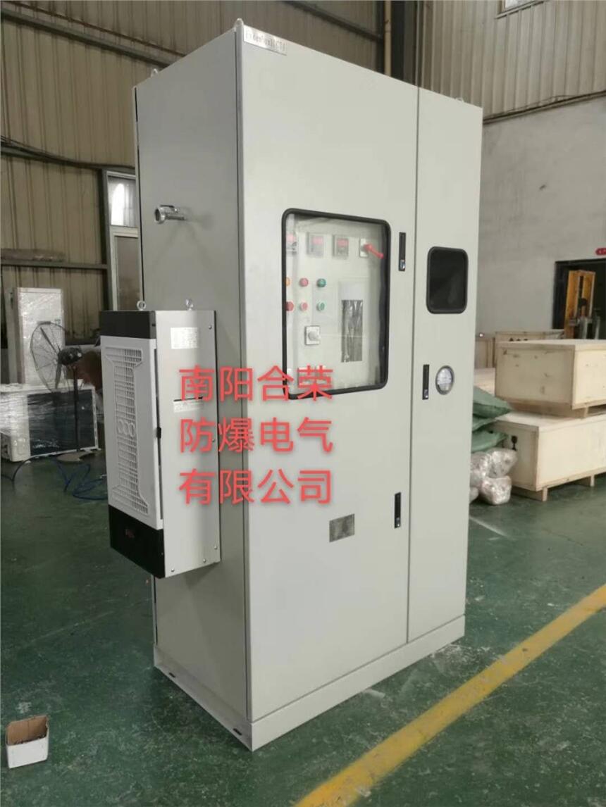 采用介质隔离点燃源的防爆措施。即:把用户所用的电器元件安装在一个充满正压洁净气体的柜体内,使外部环境中易燃易爆的混合性气体无法接触到电器元件在正常工作时所产生的电火花或危险温度,从而达到电器防爆的目的。
