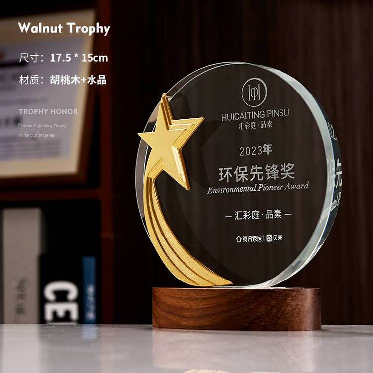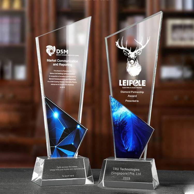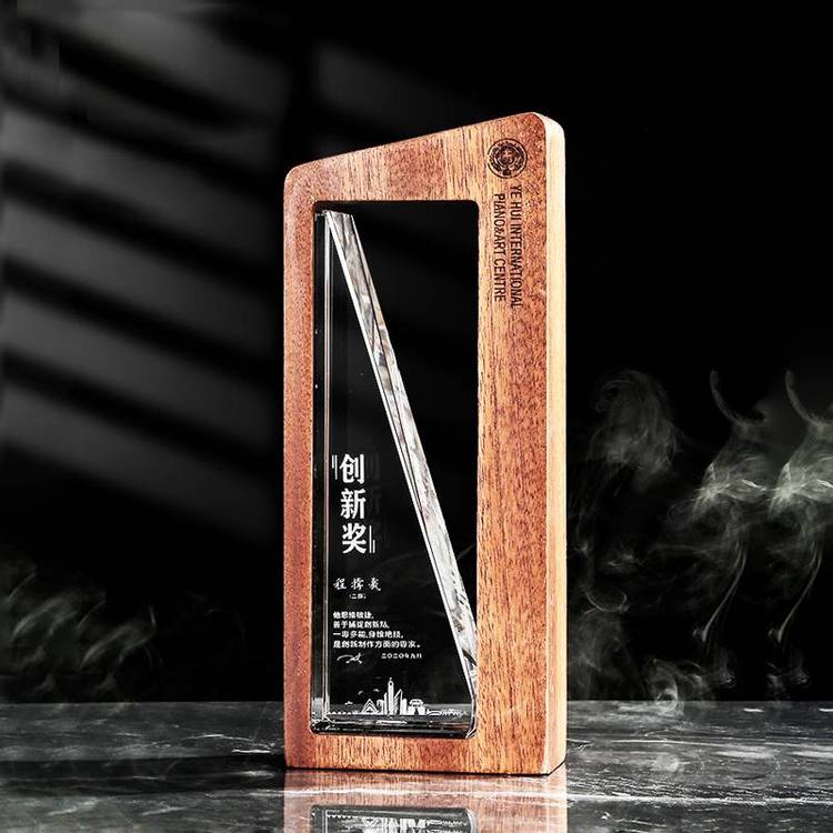 ? ? ?胡桃木底座奖杯,顾名思议,就是用胡桃木作底座的玻璃奖杯,木底座上可以用激光雕刻文字,也可以用UV印刷文字和图案,玻璃奖杯一周有刻花的,也有不刻花的,造形多样,品种丰富,玻璃奖杯上可认雕刻文字,也可以把文字和LOGO做成不同的颜色,还可以在奖杯里面用激光雕刻白色的文字或者图案,想要了解更多的工艺祥情请联系13802523292.