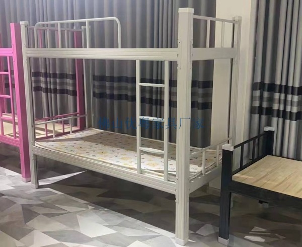 铁架床又称上下铺或公寓床或上下床,是木架上下铺床衍生而来,铁架床的特点:便于拆卸和安装,稳定性强,有效的利用了垂直空间,大大的增加了空间容量。铁架床广泛运用于各集体宿舍,如:学生宿舍,工厂/单位宿舍,工地宿舍等。铁架床工序相对简单,分为:材料,焊接,镀漆等。